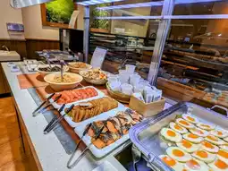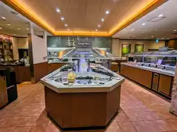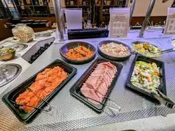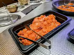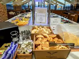 During my stay at the Richmond Hotel Premier Tokyo Schole, I had the opportunity to visit 'Sizzler Oshiage' for a buffet breakfast. The restaurant features a warm orange color scheme, creating a cozy and inviting atmosphere. One of its biggest attractions, aside from the view of the Tokyo Skytree right outside the window, is the daily changing menu, including the chef's special desserts that vary every day!