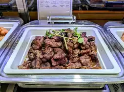 For lunch and dinner, they offer a semi-buffet style, which includes a main dish plus a salad bar. I highly recommend the Japanese-Western style hamburger steak, which is very tender and juicy, and comes with four different sauces for a rich variety of flavors. The salad bar is even more abundant than at breakfast, featuring curry, soup, pasta, and more. You could easily fill up just from the salad bar.