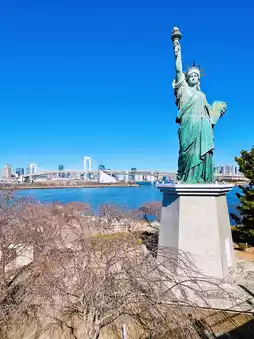 ✅Tokyo Statue of Liberty: A mini version of the Statue of Liberty. In order to cooperate with the "French Cultural Year" event in Tokyo, Paris lent its statue to Tokyo for exhibition. From April 1998, there was an endless stream of tourists coming to see it, so Tokyo people decided to keep the Statue of Liberty in Odaiba forever and made a replica of the Statue of Liberty, which is said to be one-seventh the size of the original one.