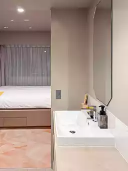 The room I stayed in was a big bed (studio double) 13m2. The orange pop interior and the big bed were very comfortable ♡