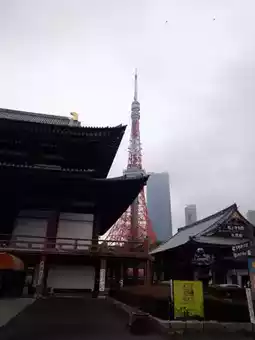 📌 Zojoji Temple: From this temple, you can see the red tower in the background. There are also some cherry blossoms starting to bloom.