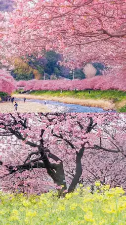 2. Kawazu River Bank: The gorgeous cherry blossoms are reflected in the clear water. The moment the train whizzes by, it's like a dream, as if you're in a beautiful scene from a Japanese drama.