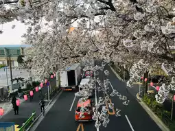 Sakura on both sides of the road with a beautiful view of the train in the middle of Tokyo. It is considered an area worth visiting for cherry blossoms like a true local, with few tourists. Let's go see it
