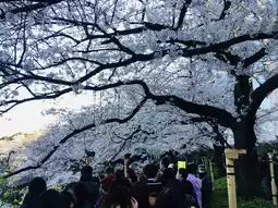 A popular park with cherry blossoms in full bloom in a truly Japanese atmosphere, perfect for walking and picnicking
