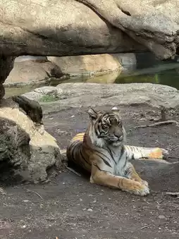 Next, I visited the tiger exhibit. These majestic tigers bask in the sunlight, their golden fur shimmering in the light. Their stern expressions and readiness to display their predatory instincts create an invisible sense of pressure.