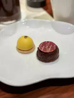You can enjoy mignardises with iced coffee. There are two types: baked chocolate and chocolate with a yuzu scent. The rich baked chocolate and yuzu scent are exquisitely matched, and you can enjoy a luxurious taste.