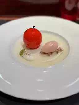 The apple mousse is light and smooth, and the caramelized red apples and cinnamon scent add a refined sweetness. The fruity acidity and aroma are exquisitely intertwined, making it a luxurious dessert.