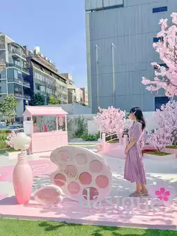 The pop-up store, decorated with cherry blossoms, pink ribbons and bridges, is a very photogenic and cute space that expresses the world of "dasique" 🌸
