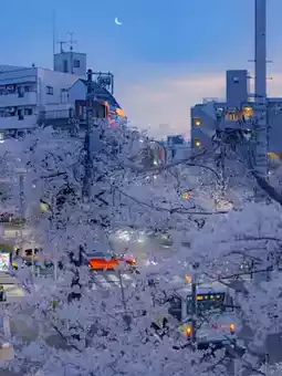 Shinjuku is the bustling center of Tokyo, and every spring the cherry blossoms here bloom, adding a natural beauty to the urban landscape. The cherry blossom trees in Shinjuku Gyoen are particularly popular with tourists, forming a beautiful contrast with the surrounding urban landscape, making it an ideal place for cherry blossom viewing.