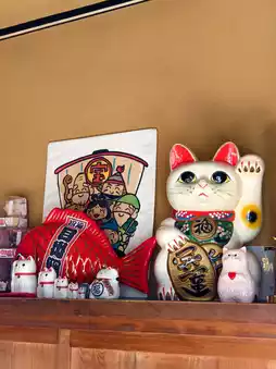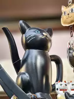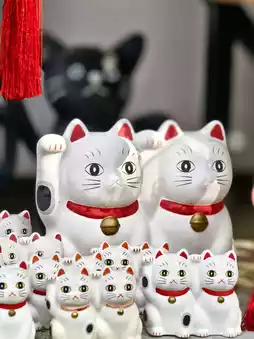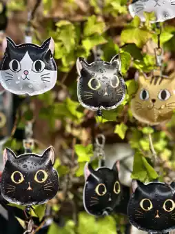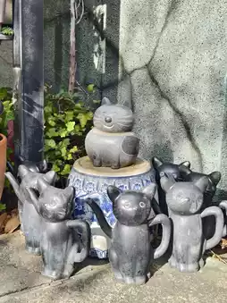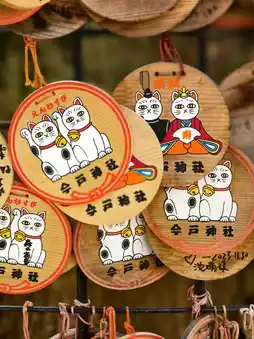 There are many cat decorations in the shrine, such as cat-shaped flower pots and pendants. The two lucky cats connected together are used to pray for a happy marriage.