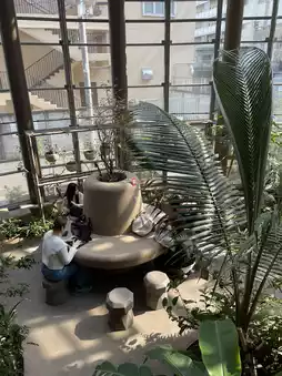 Although it is a small facility, the building is filled with tropical plants such as bananas and papayas, making it like a jungle! It is a healing spot where you can forget the hustle and bustle of the city ✨