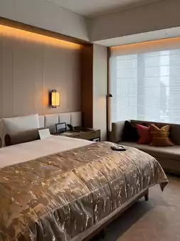The guest rooms are divided into two buildings, Heritage is slightly higher than Prestige. This time I was arranged to a tower view room, which was an unexpected surprise. The room starts at a minimum of 50 square meters, which is quite spacious for one person. When making the bed at night, there were hand-folded paper cranes and turtles (I remember that Jingbai Hotel only had turtles).