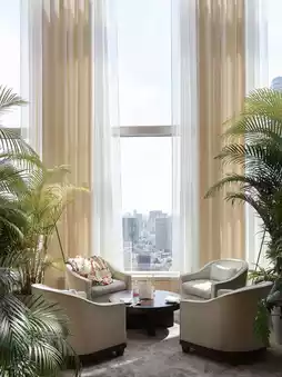 The lobby lounge where you can enjoy afternoon tea has a high ceiling, and each seat is separated by greenery, giving it a private feel, which is nice.