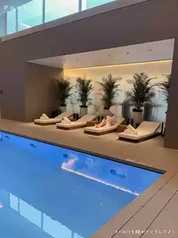 The rooms are modern and have the warmth of wood, and there's a pool, making it a large, luxurious hotel in Tokyoโจ