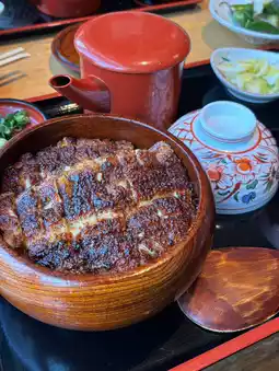 Actually, I didn't like eel rice bowls or Unadon because of the muddy taste of the eel. But after eating Hitsumabushi, my opinion completely changed..! The eel is finely chopped, making it very tender and without any bones. It was also very easy to eat with the rice and eel together in one bite.
