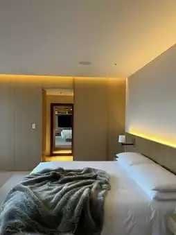 🏨Take a look at the rooms: the hotel has a total of 86 guest rooms, including 10 luxury suites, each a masterpiece crafted by masters Ian Schrager and Kengo Kuma👏. The moment you enter, the understated luxury atmosphere is fully felt, with details that amaze. Walnut wood floors paired with walls, gray and beige leather furniture complement each other, and art pieces hang on the walls, making it feel like living in a private art gallery, immersed in elegance every moment for the ultimate enjoyment!