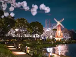 Located in Kita Ward, Tokyo, Ukima Park is a tranquil oasis that combines nature with urban scenery. In the center of the park, there is a windmill and an artificial lake where waterfowl often rest by the shore, creating a very relaxing and soothing scene. The park’s flat trails are perfect for walking, jogging, or pushing strollers, making it a great spot for both locals and travelers to unwind.