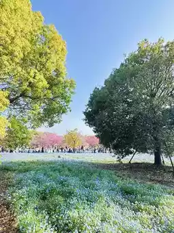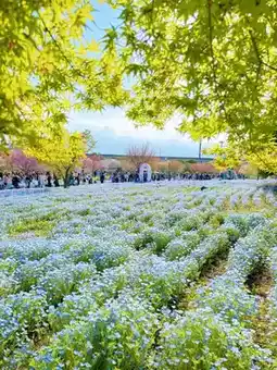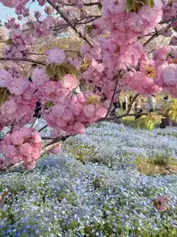 Definitely a place you should visit!!✨ A breathtaking collaboration of sparkling blue Nemophila fields and fluffy cherry blossoms✨