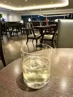 After taking a hot shower and feeling refreshed, I returned to the lounge and enjoyed a highball.