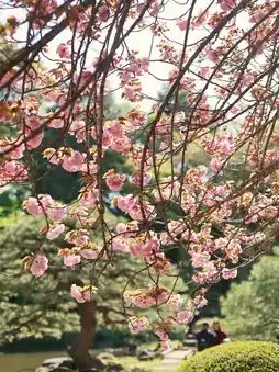 While the iconic Somei Yoshino cherry blossoms in the city have already fallen, the Edo-style "Shidarezakura" (weeping cherry trees) and Yaezakura are at their peak, bursting with blossoms. With over 200 trees, the Japanese Garden section is a haven of beauty, featuring a perfect blend of traditional gardens, rock gardens, and serene ponds. The reflection of the blossoms on the water creates a stunning scene straight out of a Japanese ink painting. 🖌️💖