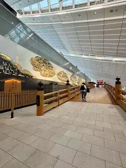 • Seasonal sakura decorations add a festive touch, even inside the airport