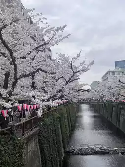 The cherry blossom trees stretch impressively for about 4 km along both banks of the river.