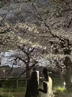 We visited at night, and the cherry blossoms were illuminated, allowing us to enjoy the night sakura.