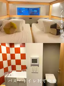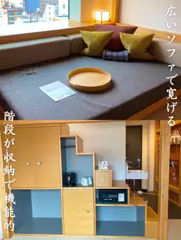 The hotel interior features a bright and pop design, creating a space that makes your stay enjoyable. The rooms are compact but cleverly arranged with beds and storage space, making them perfect for multiple guests. It’s also convenient for a “little Tokyo stay” with friends or family.