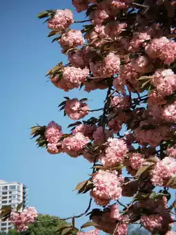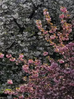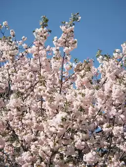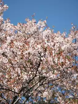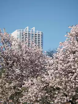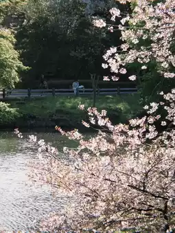 There are many cherry trees, and lots of people come with their families for cherry blossom picnics.