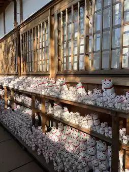 Features: Famous for the countless Maneki-neko statues scattered inside and outside the temple, commonly known as the "Cat Temple." It is an ancient temple of the Sōtō Zen sect and is said to be the birthplace of the Maneki-neko. The temple also houses the graves of the Ii family ancestors, including Ii Naosuke from the Edo period.