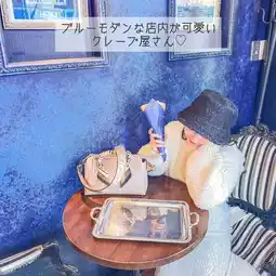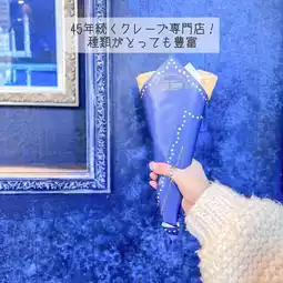 It has a blue modern exterior that is different from the image of a crepe shop in Harajuku, and it's very cute🥺💕