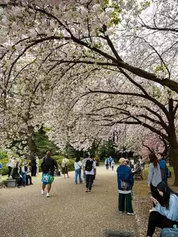#cherryblossom25 Yoyogi Park during cherry blossom season is just straight-up awesome. It’s super laid-back, full of people picnicking, playing music, tossing frisbees. The sakura trees are gorgeous, but it’s more about the fun, chill atmosphere than just staring at flowers. I went with some friends, brought snacks and drinks (yep, alcohol's allowed), and just hung out under the trees all afternoon. It’s not as “picture perfect” as some fancy gardens, but that’s kinda the charm. it feels real, alive, like a big outdoor party with petals falling all around. There were performers, dogs in costumes, even people dancing. It gets crowded, but in a good way, like everyone’s just vibing together. Honestly, if you’re into good times and cherry blossoms with a side of people-watching, this place hits the spot. No entrance fee either, so you can go all out on snacks. Totally recommend.