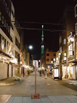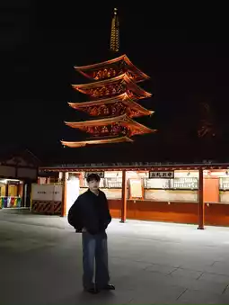 At night, Sensoji Temple becomes quieter but more beautiful! The giant red lantern at the Kaminarimon gate is softly lit, giving a truly authentic vintage Japanese feel. Strolling and taking photos on Nakamise Street late at night offers chic shots with no crowds at all.