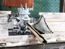 A large torii gate facing the street marks the entrance, and once you pass through, on the left is the temizuya (water pavilion)! The sacred water flowing from a bamboo pipe held by a dragon springs from the shrine grounds and is called the "Suwa Sacred Spring." It is said to bring blessings especially for eye diseases…👀