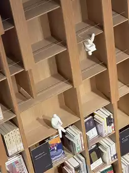 • Staircase Bookshelf: Bookshelves along the open staircase feature Murakami’s works and related books, freely available for reading.