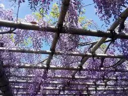 Stroll under the flower trellis, where the light purple blossoms gently sway in the breeze, as if stepping into a fairyland. Plus, you can catch a distant view of Tokyo’s iconic Skytree, blending the flowers and tower into a unique city and nature landscape.