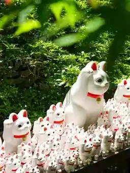Gotokuji Temple was built in 1480 and originally belonged to the Soto Zen sect. It is famous for the "Maneki-neko legend." It is said that during the Edo period, the feudal lord Ii Naotaka was passing by when a temple cat beckoned him inside to shelter from the rain. After hearing the Buddhist teachings, he was deeply moved and designated the temple as the Ii family’s mortuary temple, beginning to worship the Maneki-neko, symbolizing "good luck, fortune, and prosperous business."