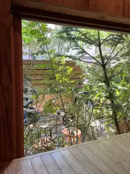 This café has an outdoor terrace where you can enjoy coffee under the shade of trees. Although I opted for indoor seating due to the heat, I highly recommend sitting outside when the weather is cooler. Especially in spring, you can sip your coffee amidst falling cherry blossoms 🌸.