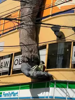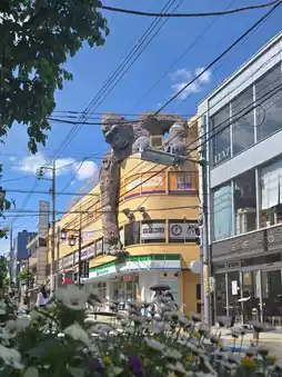 As soon as you step out of Sangenjaya Station, you'll be greeted by the whimsical sight of the "Gorilla Building" (ゴリラビル). A massive gorilla sculpture perches atop the building, carefully cradling a little girl in its hands. This quirky and adorable scene has become a must-visit landmark in Sangenjaya, with many visitors snapping photos to capture this imaginative moment.