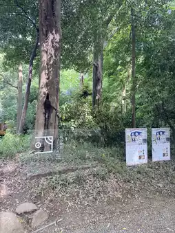 you encounter a space within a quiet and lush forest path,