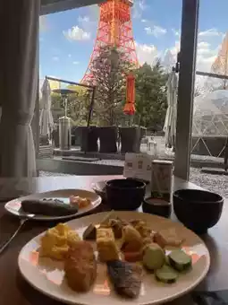 Breakfast includes freshly made omelets ~ There are also unique matcha and chocolate flavors ~ You can see Tokyo Tower directly while having breakfast ~ It’s very relaxing to watch and eat at the same time
