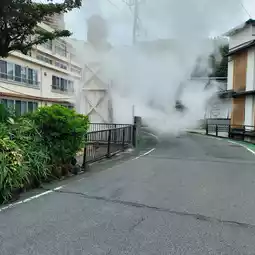 What impressed me most about Atagawa were the giant hot spring wells visible everywhere by the roadside. Steam billowed up, and combined with the rustic surrounding buildings, it evoked a somewhat eerie and mysterious atmosphere reminiscent of the Sadako movies. Imagining the nightfall, with red lanterns lighting up one after another, the warm light mingling with the mist would surely add a magical touch. Unfortunately, the trip was rushed, so I couldn’t wait for the night view, but the daytime experience alone made me fall in love with this small town.