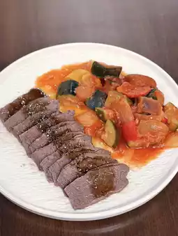 The beef is tender with a good bite, and the seasoning is just right, preserving the natural aroma of the ingredients. The ratatouille has a rich tomato flavor, making it quite appetizing.