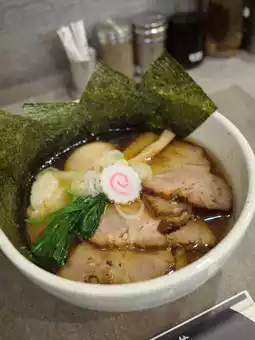The shop has only 7 counter seats. The kitchen front is glass-paneled, allowing you to watch the noodles being made while you wait—an exclusive pleasure of this shop. The warm hospitality from the owner and his mother adds to the cozy atmosphere .