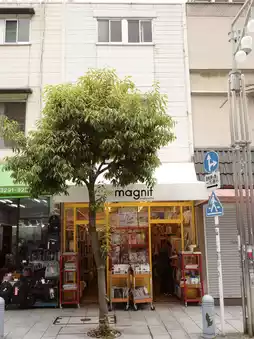 Magnif, marked by its yellow door, stands quietly on Suzuran Street in Jinbōchō.