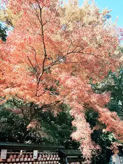 In autumn, the shrine grounds are adorned with vibrant fall colors, creating a tranquil atmosphere.