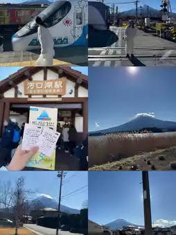 Kawaguchiko Fuji, last day using Wild Pass. Plan carefully and book one month in advance to avoid no seats and long standing on the Fujiexcursion. Tour around Lake Kawaguchiko using the red line 1-day pass. It’s very crowded, so choose the last stop only, otherwise, there’s no bus back. Take the train back to Shimoyoshida Station for photos. The train is very cute.