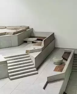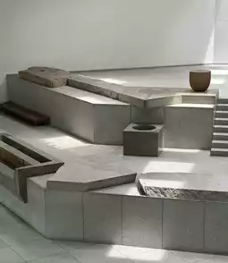 The Sogetsu Kaikan building was designed by Kenzo Tange. As the building was nearing completion, Isamu Noguchi was invited to create the interior garden. Although the creative process involved building first and then installing the artwork, the 【Paradise】 installation interacts closely with the architecture. The installation faces the resting platform of the spiral staircase, perfectly aligned with the direction of the top windows. Due to the raised ground level at the entrance, the entire installation cannot be viewed at once; it must be experienced step by step by ascending the stairs floor by floor.