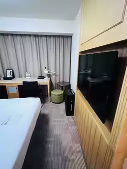 The room has the usual drawback of being quite small, so it’s not very convenient if two people want to move around. However, there is a long table where you can sit and eat, which is nice. I must honestly say that the cleanliness🧹 could be improved. I even found hair left by previous guests on the bathroom wall. Amenities can be picked up at the lobby on the first floor. Sharing my accommodation experience with everyone, I think I’ll try staying somewhere else next time🤣🤣🤣.