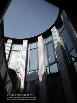 The sound of flowing water echoes through the glass, creating a serene architectural beauty. A place where the exhibits and the building blend together.